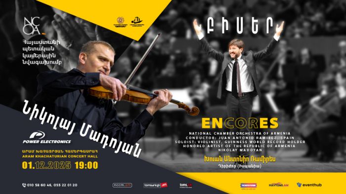 Երեկոյի մենակատարն է Գինեսի ռեկորդակիր և Հայաստանի Հանրապետության վաստակավոր արտիստ, փայլուն ջութակահար Նիկոլայ Մադոյանը, որի վիրտուոզ կատարումները կգրավեն յուրաքանչյուր ունկնդրի սիրտը։